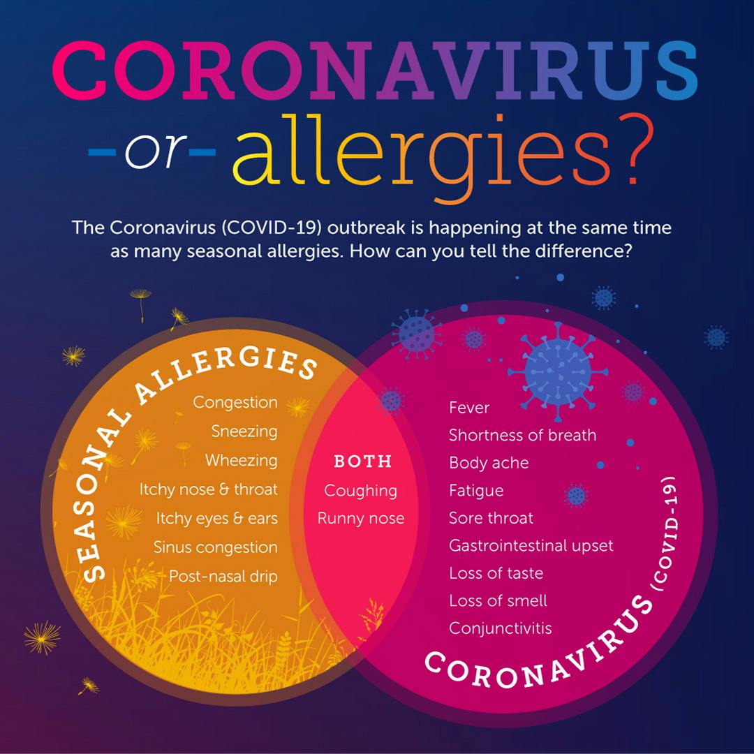 Amidst the COVID-19 pandemic, many are left wondering what's to blame for their symptoms, fearful that they may have even caught the contagious virus. While some symptoms overlap, thankfully there are still large differences that separate COVID-19 from both allergies and a...